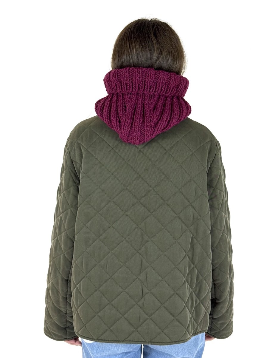 Genser med rund hals, cardigan eller hettegenser med rund hals og lue