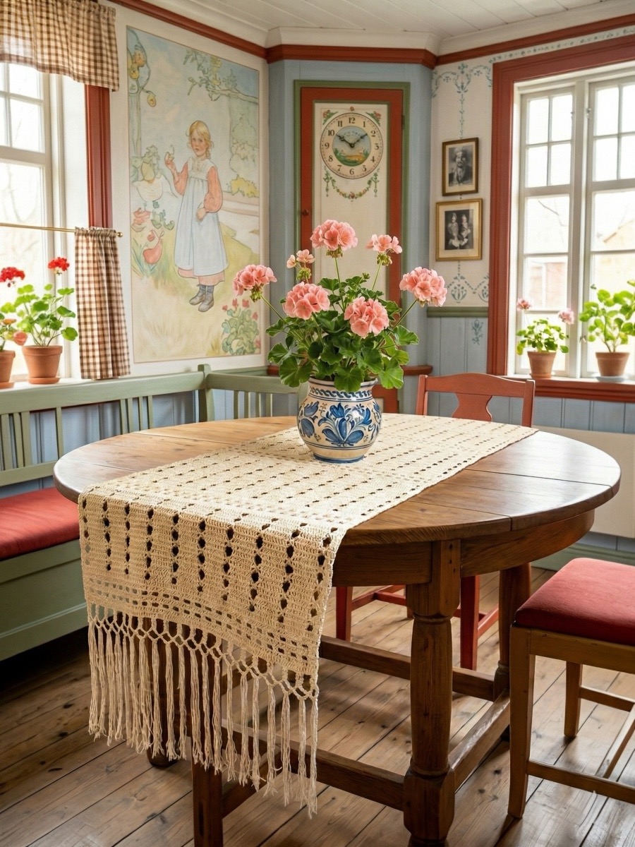 Å hekle en klassisk duk eller løper er et tidløst håndverk, og du lager en elegant blondestruktur ved å kombinere tette deler av stolper med luftige deler.