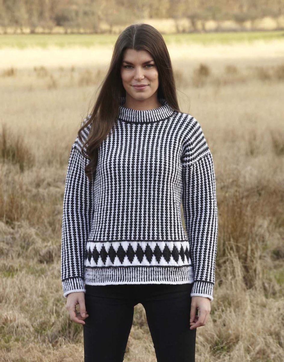 Genser med bærestykkemønster