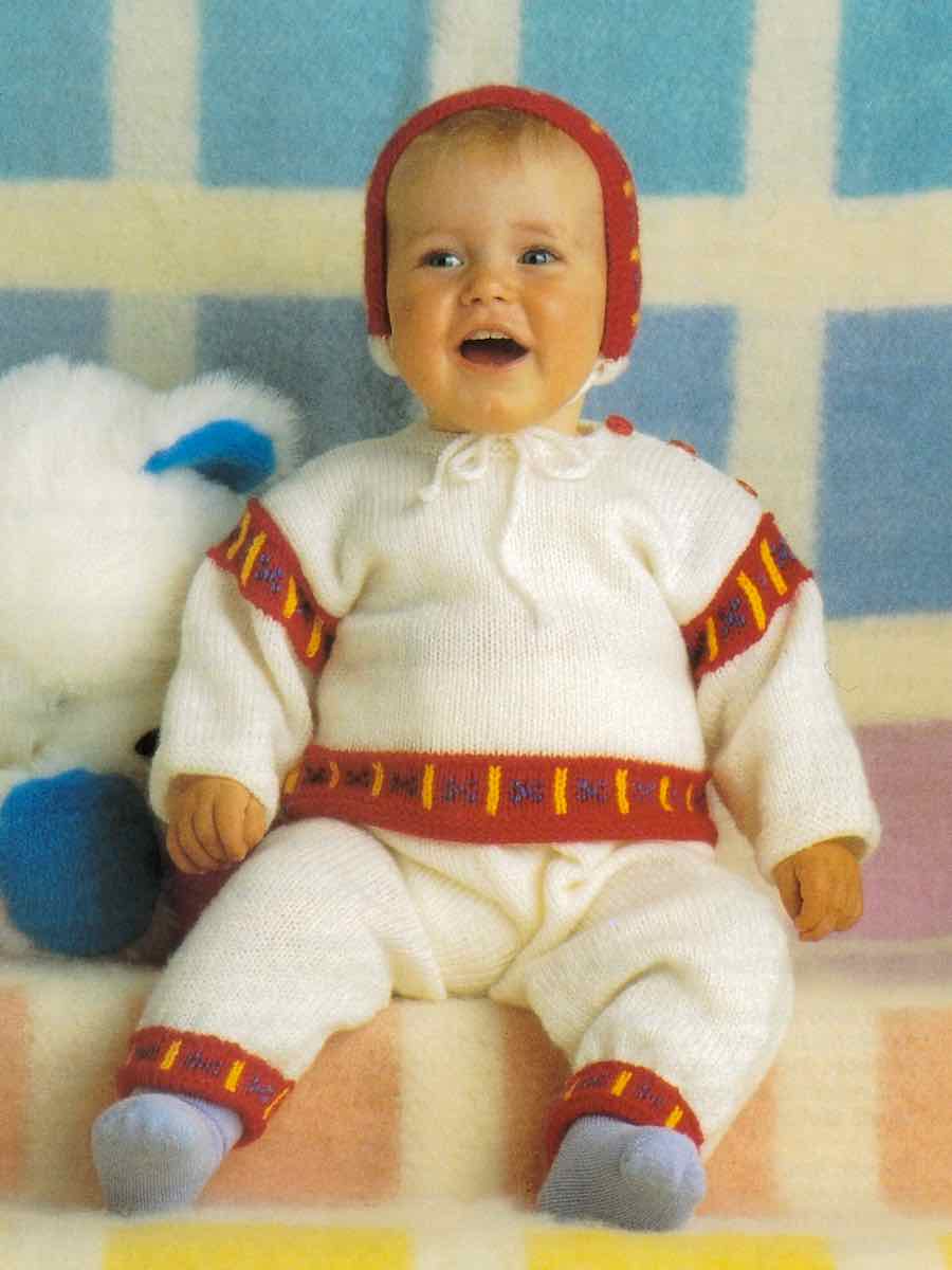 Tilbehør: Genseren: 3 knapper. Bukser: ca. 60 cm strikk.