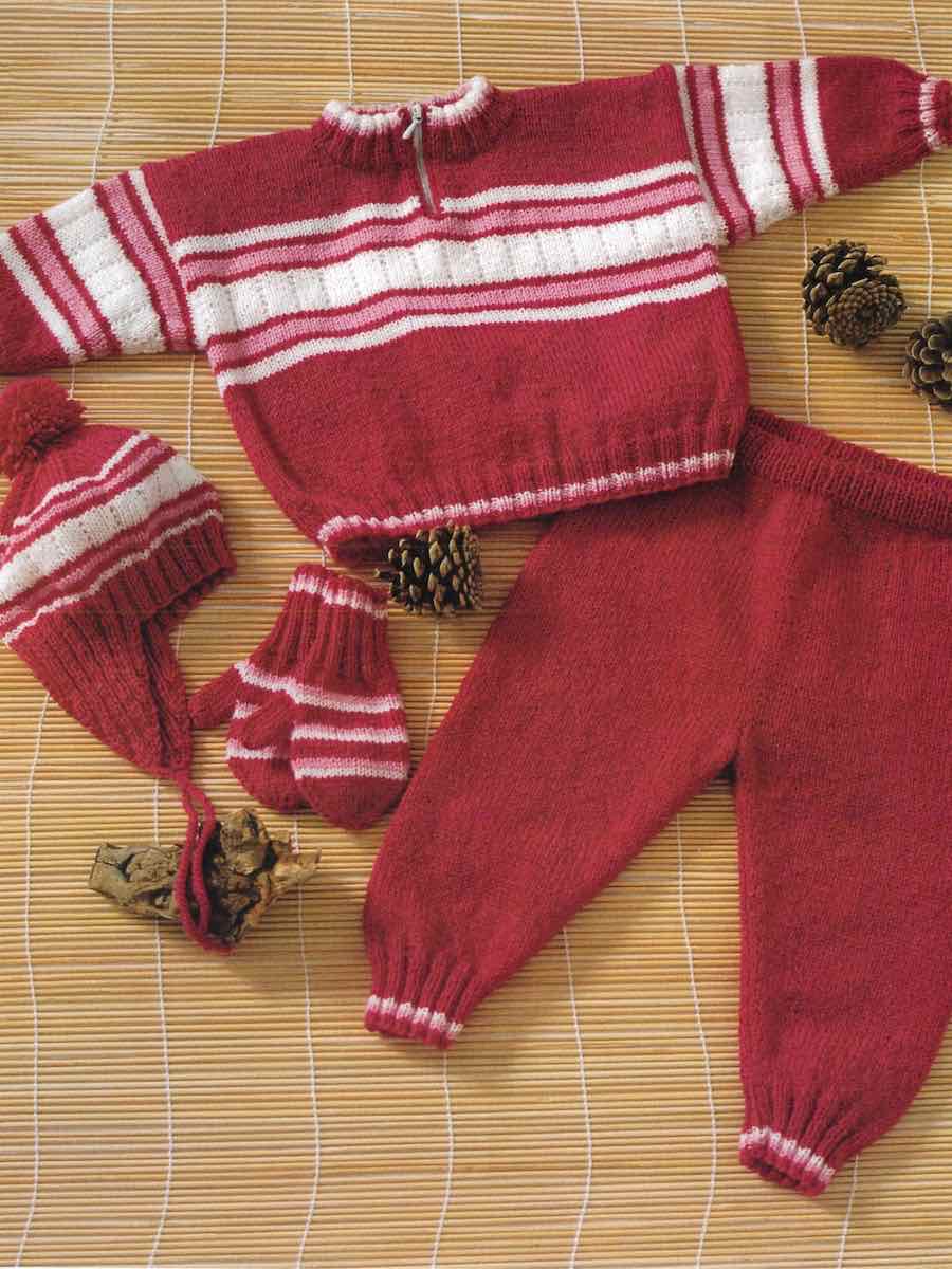 Settet består av genser, bukse, lue og votter i et flerfarget mønster. Plaggene strikkes nedenfra og opp. Genseren og luen har et diagrammønster med fellinger. Buksene strikkes i glattstrikk med strikk i livet. Vottene er formet med fellinger.