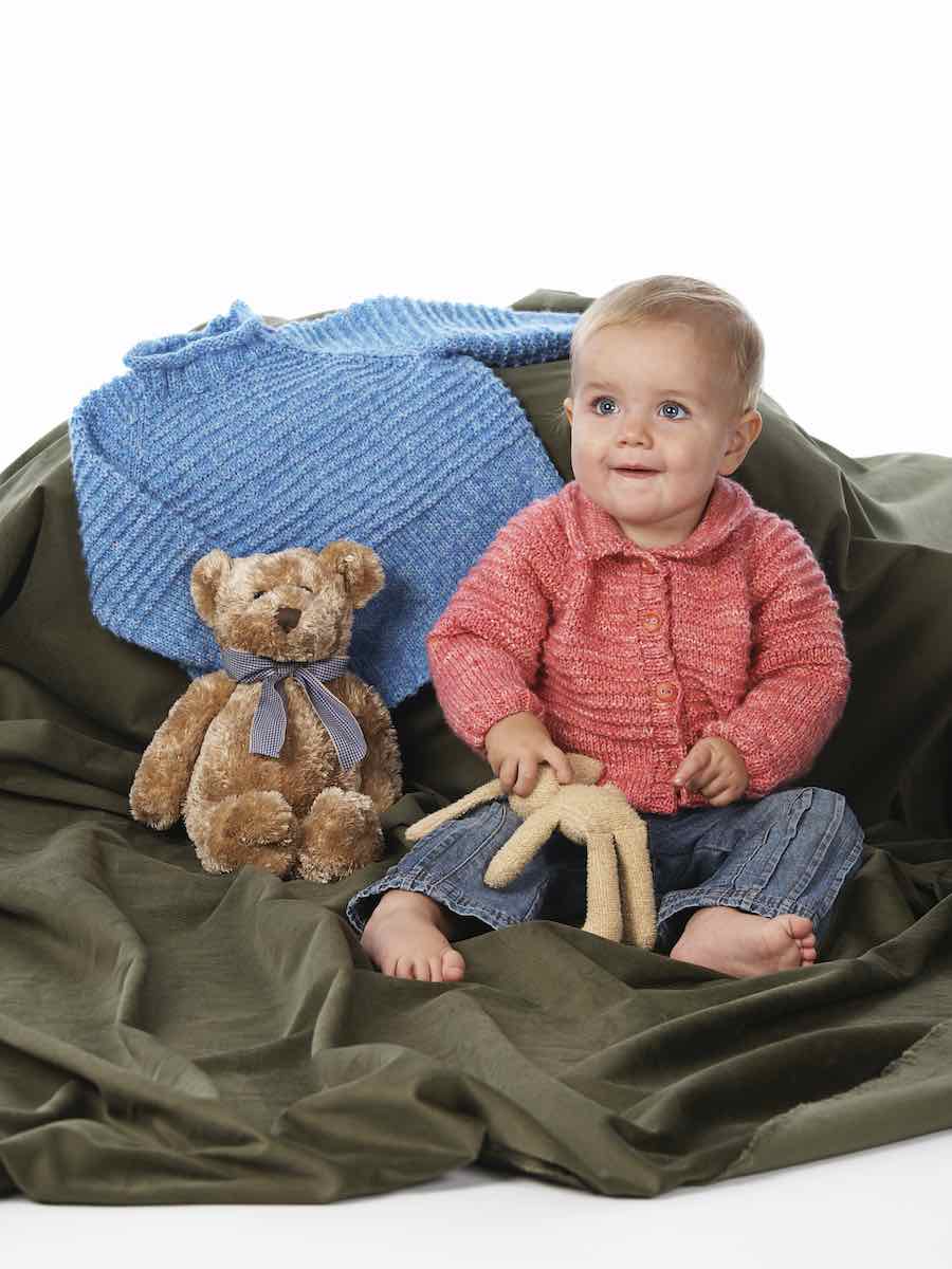 Genser, cardigan: 3 (3) 4 (4) 4 (5) stk. (fg 151 turkisblå/fg 150 rosa-aprikos)