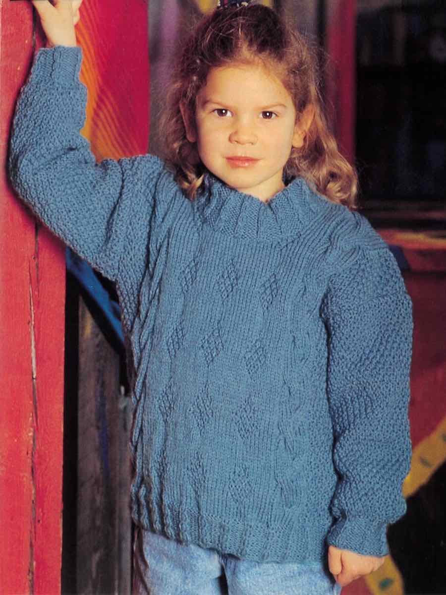 T-skjorter for hele familien. Genserne er strikket med fletter og strukturmønster på tradisjonelt vis.