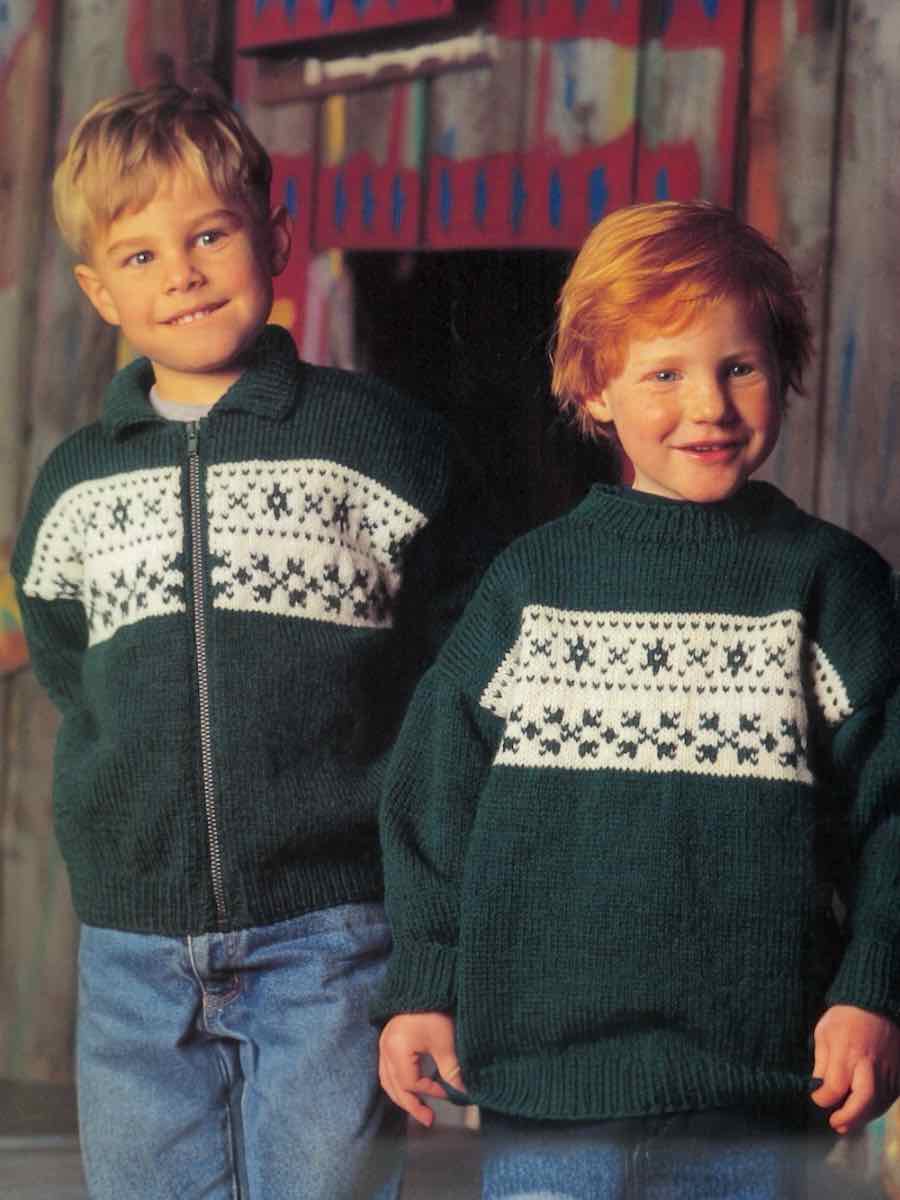 Koften og genseren er strikket på tradisjonelt vis i deler. Fin mønstret kant og nedbrettede ermer.