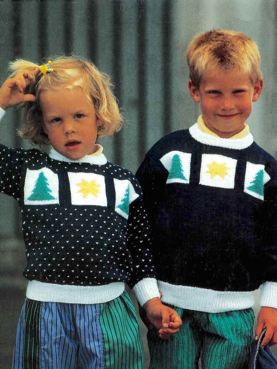 Julestrikkemønster med grantrær og en stjerne i flerfarget. Mønsteret strikkes etter diagrammet i glattstrikk med rettmasker på retten. Strikk fra høyre mot venstre, og gjenta over den angitte bredden. Perfekt til gensere, vester eller julepynt.