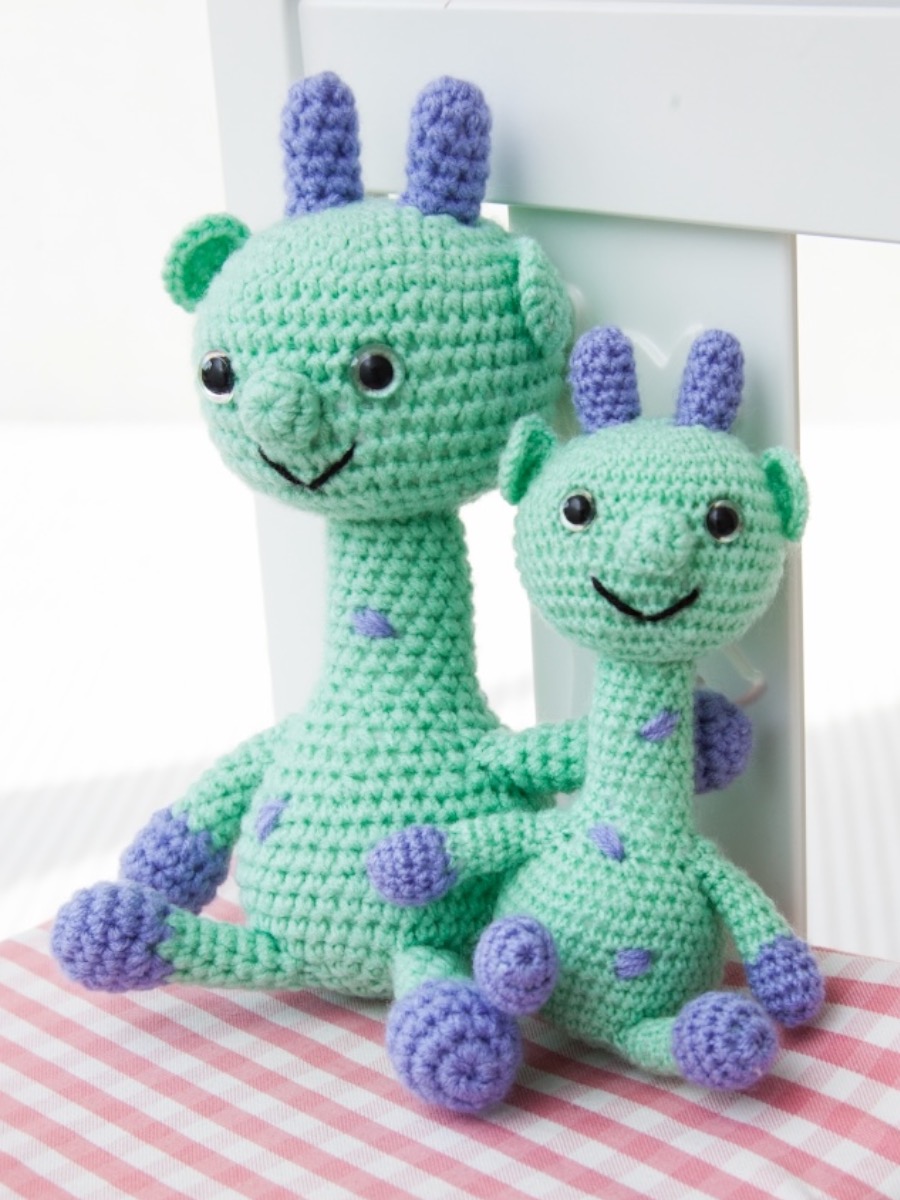 Heklede sjiraffer kan lages i to størrelser ved å hekle med enten enkelt eller dobbelt garn. Arbeidet starter med hode og kropp som hekles rundt i fastmasker med økninger og fellinger for å få riktig form. Deler som bein, armer, horn, ører og nese hekles separat og fylles deretter med vatt før de sys på. Som en siste detalj er munnen brodert med svart tråd, og sjiraffen får sine karakteristiske flekker med lilla garn.