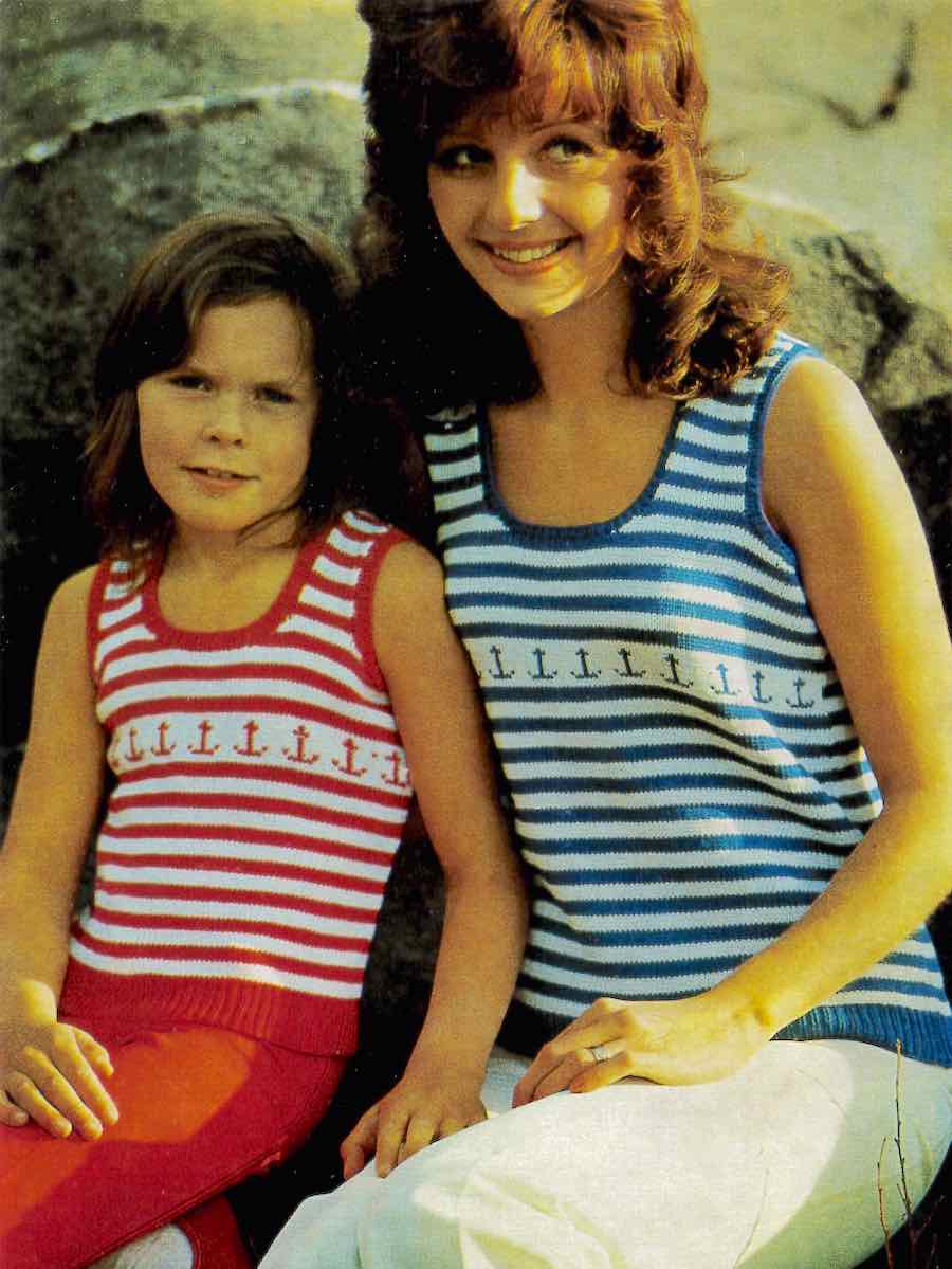Garnbehov: 1½ nøster av grunnfargen (bfg) og 1 (1) 1 (1½) 1½ (1½) nøster hvit i Bianca