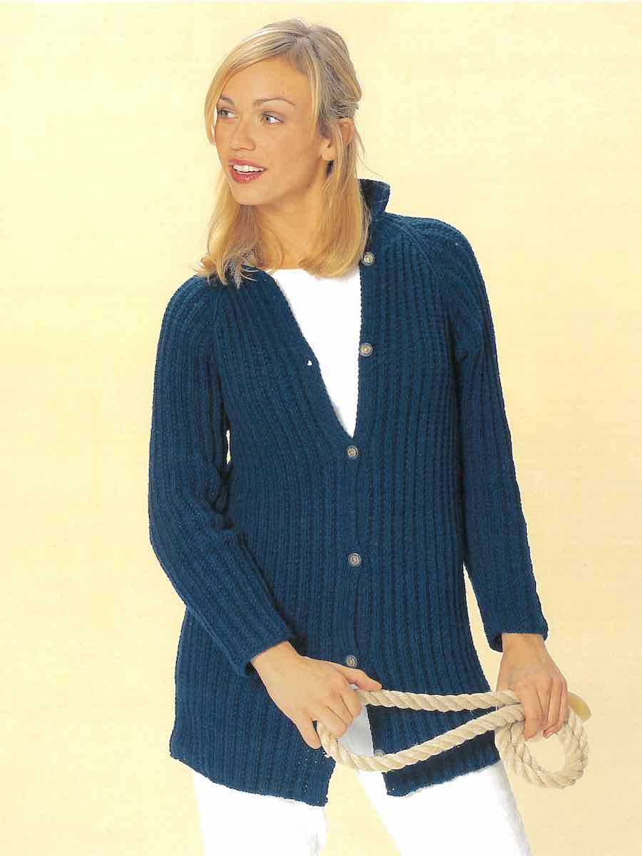 Lang cardigan strikket med strukturmønster og raglan. Strikk i seksjoner og nedenfra og opp.