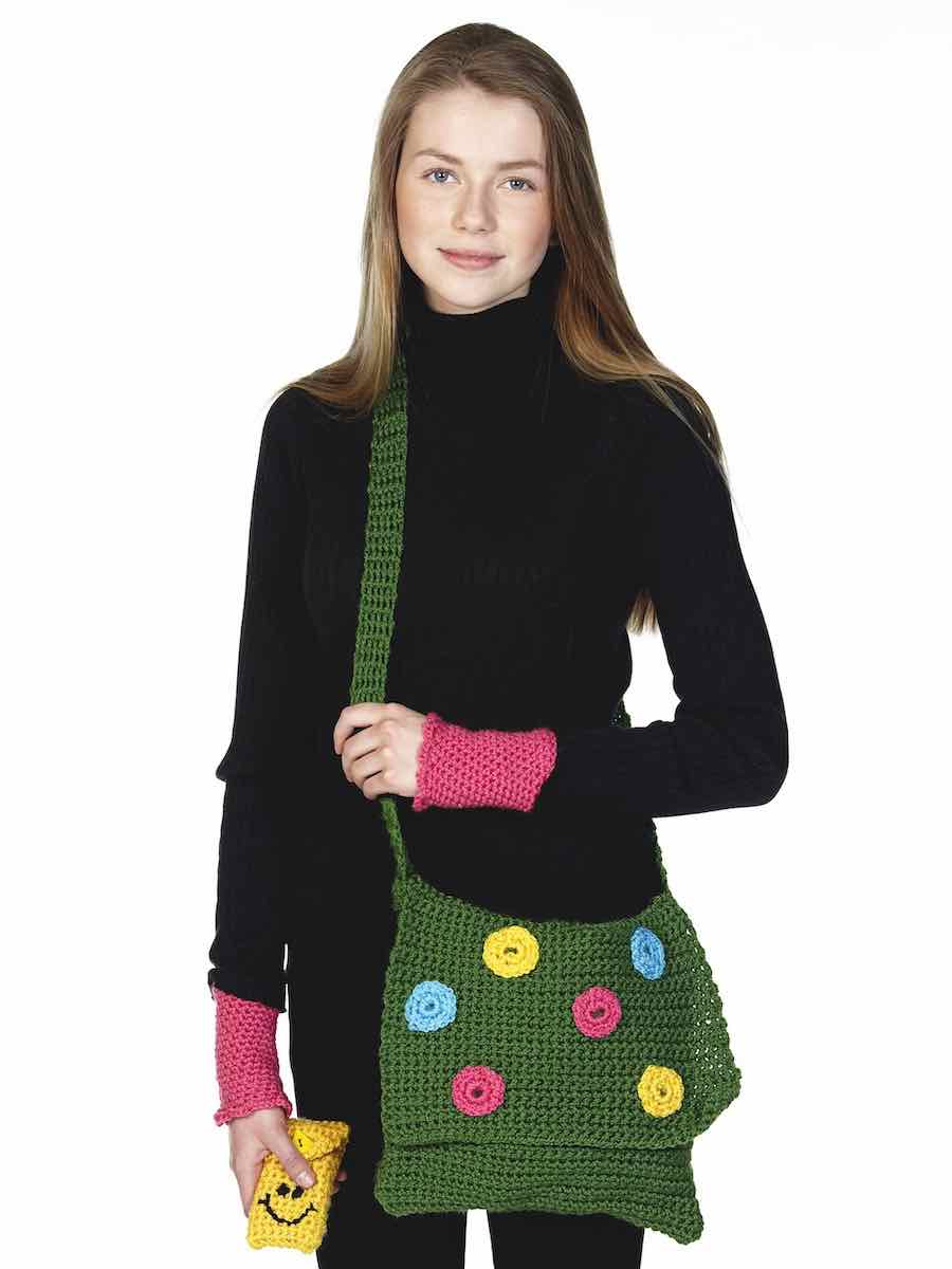Hekleveske, mobilveske og pulsvarmer