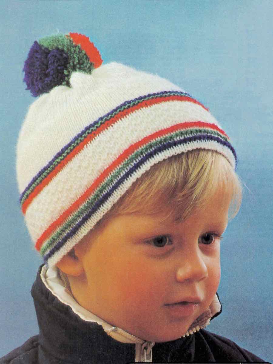 Søt lue til barn i størrelse 1-5 år med flerfarget mønster i henhold til diagram. Luen strikkes rundt i glattstrikk, med et dekorativt mønsterparti i midten. Avslutt med fellinger og et nøste. Sy sammen i siden og fest fôret inni.