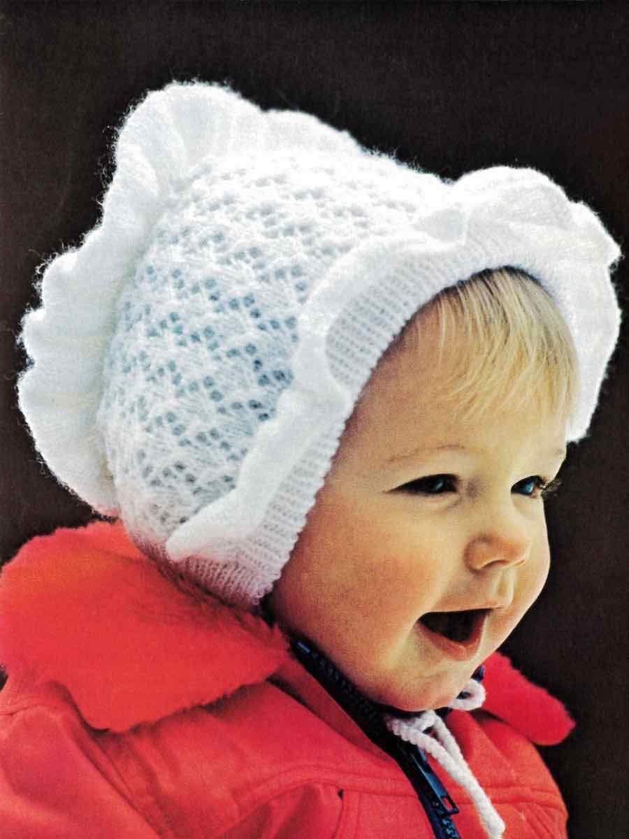 Strikket lue med hullmønster og vingekanter.