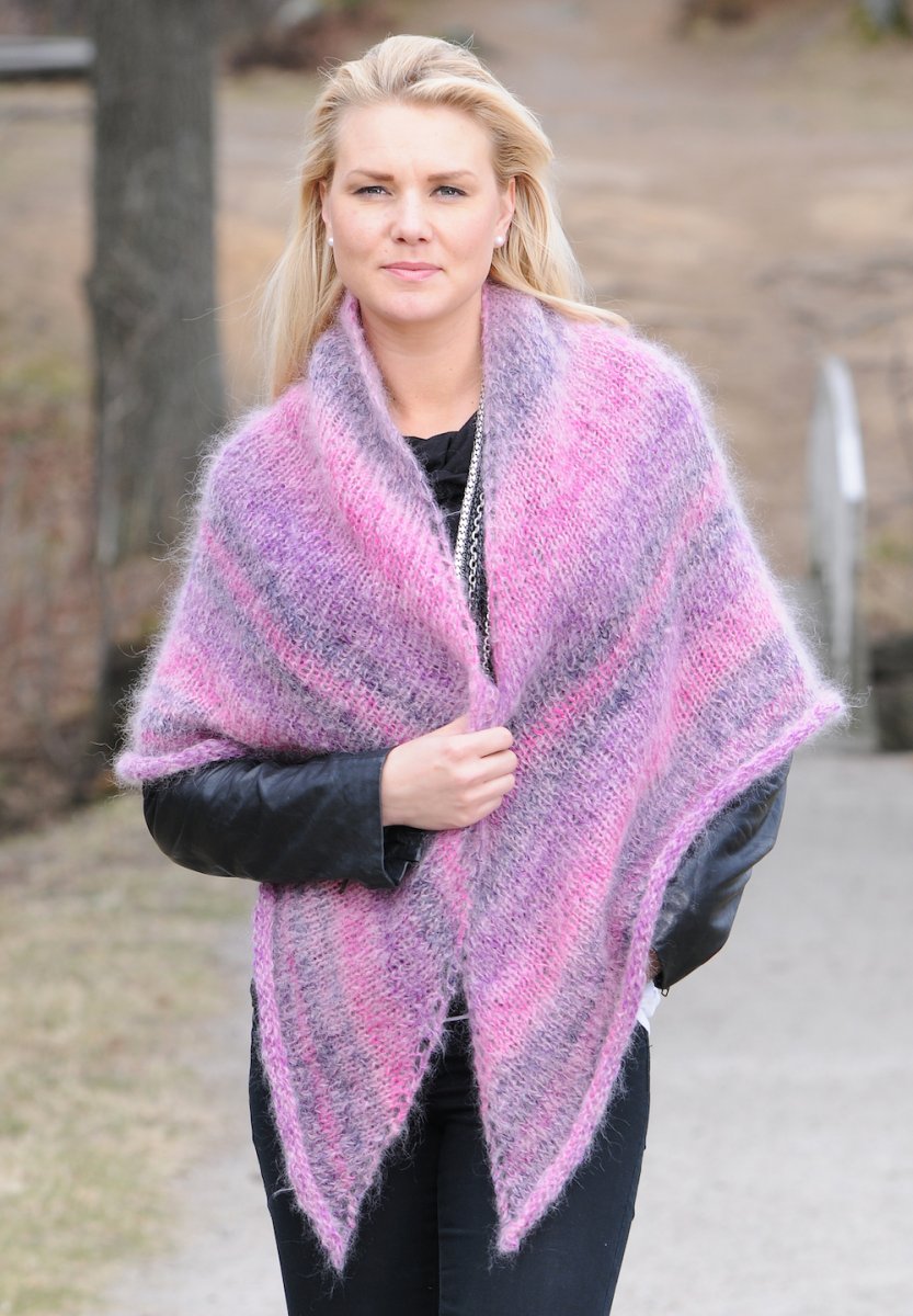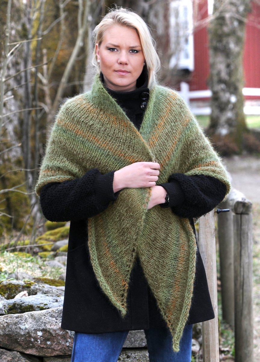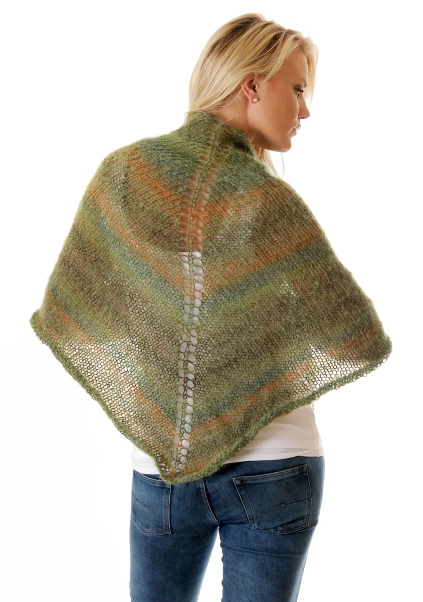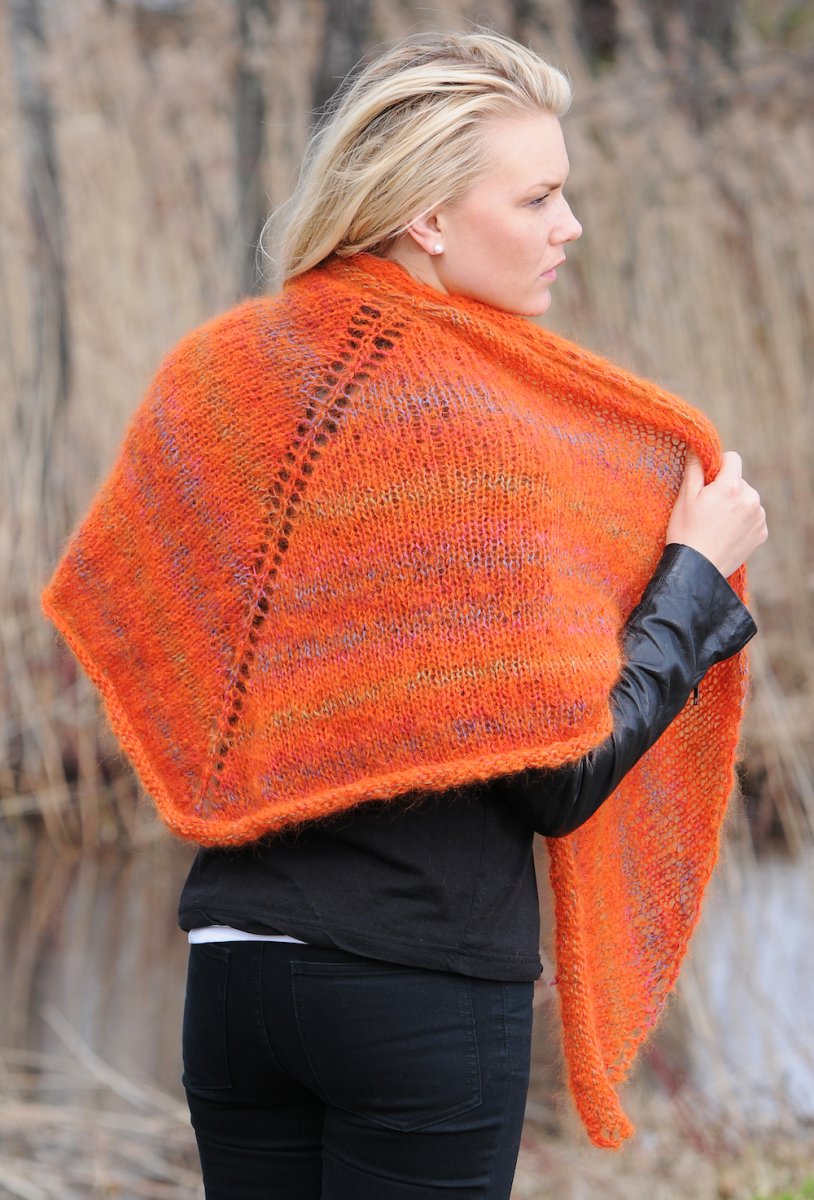 Sjalet strikkes i glattstrikk til garnet er tomt eller ønsket lengde er nådd. Fell løst av for en myk kant.