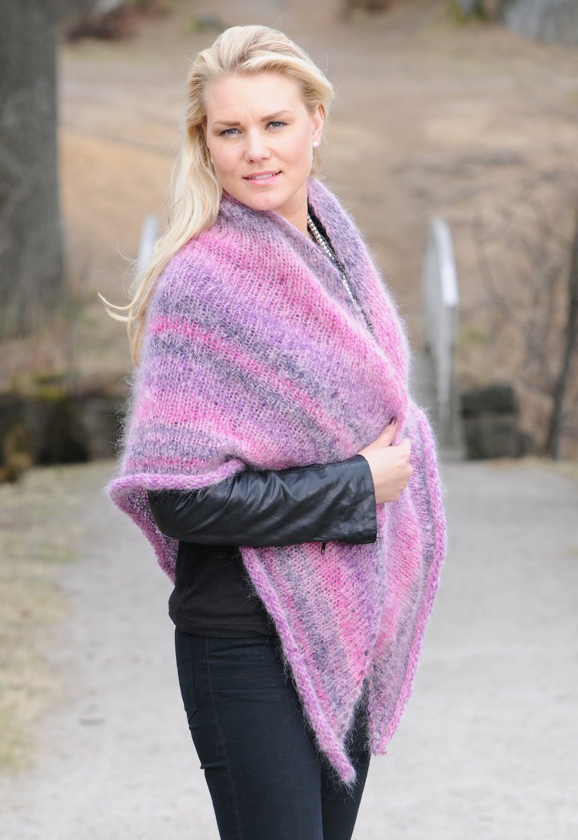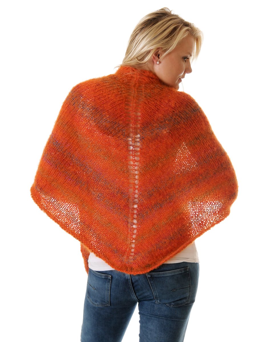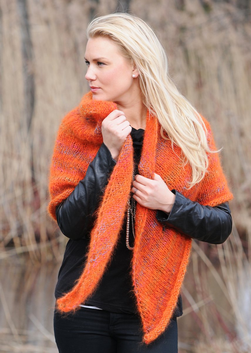Sjalet strikkes i glattstrikk til garnet er tomt eller ønsket lengde er nådd. Fell løst av for en myk kant.